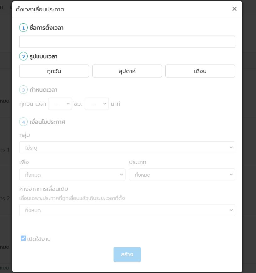 2. คลิกปุ่ม “สร้างการตั้งเวลา” จะพบหน้าจอการตั้งค่าดังนี้